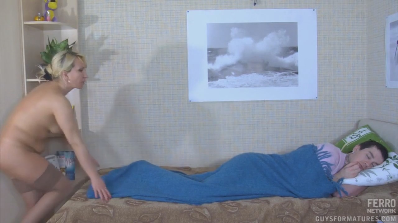 Мамка у этого парниши, конечно, мегера интересная. Абсолютно не готовя сына к тому, чтобы он воспринимал ее в своей голове не только как мать, но и как женщину, она просто забралась к нему в постель и начала лезть к хую. Ее спасло то, что парень спал как убитый, но даже полутруп почувствует, что его хуец как-то странно надрачивают, отчего в него приливает кровь. "Ты че?!" - вскочил сын, видя, как голая мамочка в чулках пытается у того отсосать, но она просто придавливает его весом и авторитетом, после чего процесс доходит до совокупления. Кончить она дала только себе.