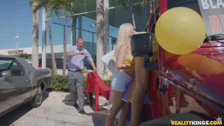 Девушке пришло рекламное сообщение-напоминание о черной пятнице, вот только подруги отписались в общий чат, что денег ни у кого нет. На выручку пришла "золотая карта", а точнее она так же черная, ее дал новый муж метиски. Девки собрались толпой и пошли шопиться, пока не наткнулись на салон по продаже автомобилей. Пока они рассматривали красный джип, к ним подбежал консультант, предложивший устроить тест-драйв. Обеспеченная транжира попросилась сама за руль и все четверо поехали колесить по ближайшим улочкам. По пути две подружки, сидящие на заднем сидении начали сосаться, что немного смутило продавца. Но дальше девчонки сняли верх и кроме обычных поцелуев, стали ласкать сиськи друг другу. Отвернуться пассажиру было просто невозможно, не каждый день такое увидишь. Водительница положила руку парню на член и поняла, что он готов - его хуй тверже некуда, а значит нужно зарулить в ближайшую подворотню и устроить тест-драйв симпатичному жеребцу, перетрахавшись вчетвером прямо в тачке.