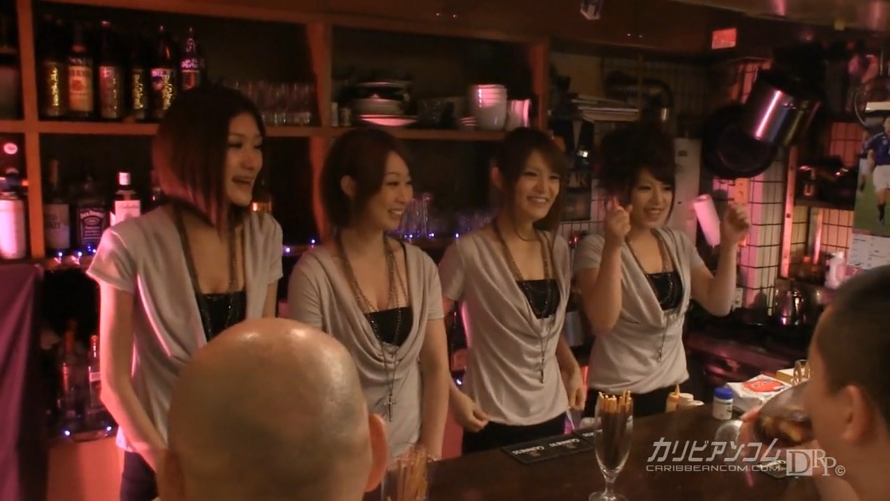 Друзья зашли в бар, где прислуживали четыре барменши. Других посетителей в баре не было, поэтому все внимание девушки уделили мужчинам и удовлетворили все их желания. Шлюшки занялись сексом с четырьмя мужиками прямо на рабочем месте и позволили выебать себя в анальные дырочки.