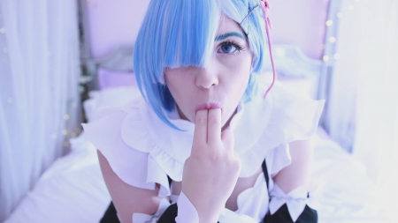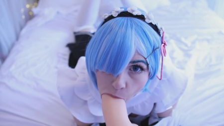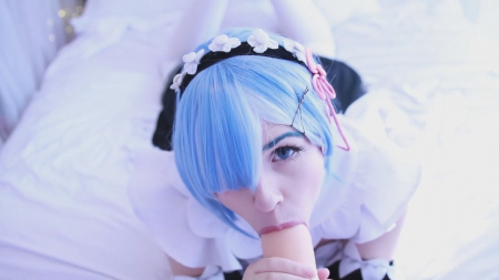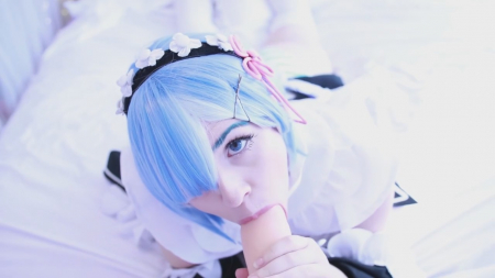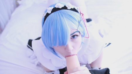 Добро пожаловать домой, хозяин. Я хочу для вас помастурбировать, после чего взять в рот ваш толстый член. Он такой крепки и желанный, жду не дождусь, когда смогу ощутить у себя во рту его плоть. Симпатичная анимешница в синем парике и костюме как у персонажа компьютерной игры легла на спину и сдвинула полосатые морские трусики в сторону, поласкав киску пальчиками. Голубоглазая няшка не выдержала и стала сосать резиновый хуй, давая возможность почувствовать себя тем самым, к кому обращается героиня. Пенис и правда достаточно большой, конечно меньше, чем его рисуют японские хентаисты.