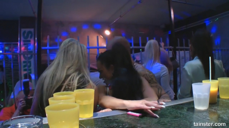 Яркие цветные огни не отвлекают оператора снимать крутую вечеринку с кучей доступных блядей, которые трахаются с разными партнерами налево и направо и даже с несколькими одновременно. У них задача как следует развлечься и у них это получается весьма неплохо. Тут и сами девочки не против полизать друг другу когда становится скучно. Подружки одной из них встали рядом и просто кайфовали от того как прут их знакомую, хотя сами только что вдоволь натрахались. А самой сексуально раскрепощенной оказалась короткостриженная баба, которая стояла раком, сосала у второго, пока первый ебал сзади.