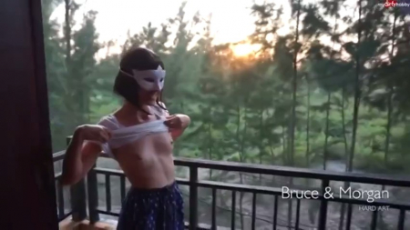 Утро начинается у многих с похода в туалет. Этот парень не является исключением, только вместо унитаза он выволок подружку на огромную лоджию, надел ей на лицо карнавальную маску, посадил перед собой на колени, достал инструмент и выдал мощную струю на симпатичную мордашку. Она получает эстетическое, извращенное удовольствие от золотого дождя, то есть чикуле очень нравится. Когда бак опустел, она облизала его, взяв за щеку, после чего подняла футболку стоя в луже и показала супер маленькие сиськи, задорно улыбаясь.
