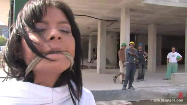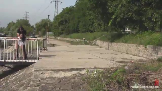 Властная телка проводит связанную симпатягу мимо стройки и дрочит пленнице там, потом довела пленницу до моста, где несчастной занялся уже мужчина. Мужчина отлизал пленнице и вонзил свое острое копье в пилотку. Вместе парочка прошлась по улицам и переходом и несколько раз во время пути занималась сексом.
