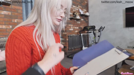 Блондинку друг попросил помочь с предстоящим тестом. Так как он крутой парень в колледже и ему западло самому разбираться, потому попросил помощи у симпатичной одногруппницы, которая пришла к нему в гости. Его уже не так интересовали пособия и учебники, своей рукой он полез к маленьким сиськам, расстегивая одежду, на что получил в ответ только "ты же попросил помочь с тестом?! у меня ведь есть бойфренд!", но руку его так никто и не остановил. Очкастая сама успела возбудиться и полезть в штаны, достав его крепкий хуй. Она не считает чем-то зазорным разочек изменить своему молодому человеку с тем, кого хочет весь колледж.