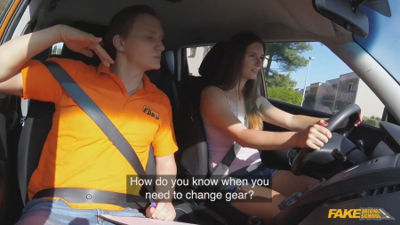Очень нервозный выдался денек у будущего водителя женского пола. По пути было много препятствий в виде других автомобилей в городе, а вот со знаками совсем беда - красавица их просто не замечает. Это очередной минус в копилку инструктора, делающего заметки на тестовом листе. В пути он то и дело пытался потрогать девушку: то на голую ногу положит свою руку, на поворотах цепляется за грудь, поглаживает плечо, якобы пытаясь успокоить. В итоге он попросил остановиться на проселочной дороге чтобы вынести печальный вердикт - вождение не пройдено, а значит нельзя допустить к экзаменам. Но показанные сиськи и дальнейшие действия внутри салона и на капоте поменяли решение на выдачу в дальнейшем водительских прав.