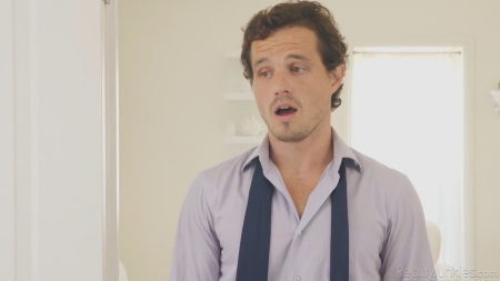 Блондиночка сделала все дела, уложила хозяйского ребенка спать и пошла к ним в спальню лежать на супружеской кровати в вызывающем купальнике, разговаривая с розовым зайчиком по кличке Фаппи и, может быть, немного приласкать свою дырочку, через сдвинутую одежду в промежности. Неожиданно заявился хозяин, который извинился за неожиданный визит и было собирался спокойно покинуть собственную комнату, но блондиночка его остановила, попросив об одной сексуальной услуге. Ему придется изменить жене, но ради такой няши можно немного сходить налево. Девушка громкая, но малого не разбудила.