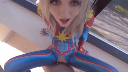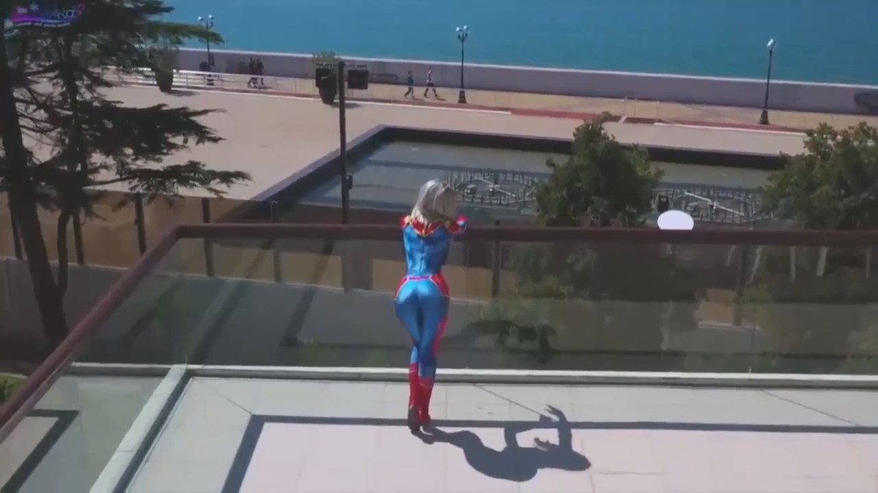 Квадрокоптер снимает блондинку на мансарде шикарного малоквартирного особняка в обтягивающем сине-красном костюме, цвета Капитана Америки или Человека-паука. Супергеройская шлюха находится у бойфренда в гостях, пока весь остальной мир борется с преступной, она развлекается скачками на члене любовника через расстегивающиеся в паху штаны. Да, даже у самой крутой телки на планете есть свой ебарь. И на лестнице ее поебали и на подоконнике вплотную к окну, а в завершении дали в ротик, напуляв туда немало прокисшей спущенки.