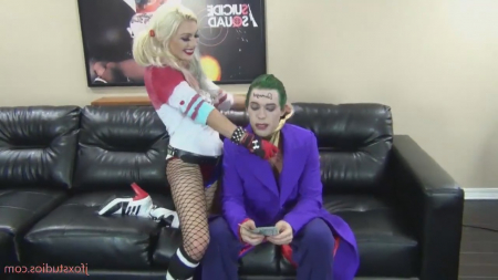 Преступную пару возбуждает пересчитывать награбленное у не совсем честного народа. Главный преступник Готэма, злейший браг Бэтмена, примерный семьянин Джокер имеет некие наклонности, о которых знает только его любимая - Харли Квинн. Девушка стала приставать к зеленоволосому приятелю и, как бы он не сопротивлялся, заставила его подставить би анус под ее страпон на поясе. Малыш Джокер испытал анальный оргазм, а сам от ебли в задницу кончил себе на живот. Он хочет быть подчиненной сучкой, чтобы его держали за ошейник и тянули назад как ретивую собаку.