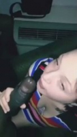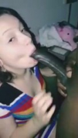 Щечки чернильницы сдуваются, когда та пытается высасывать жизненные силы из африканского шамана. У него даже головка черная, будто тонированная - именно это привлекает его к белокожей самочке. Она старательно заглатывает на сколько может в почти полной темноте, ее лицо подсвечивается лишь светом от мобильного телефона, на который снимает негр. Шпага у него довольно большая, богатырская и очень быстро ослабела когда потенциальный рэпер спустил на язычок подруги, спрятавшей по рефлексу его в ротик, хотя хозяйка не сильно этого хотела. Абсолютно безмолвная домашняя порнушка получилась.