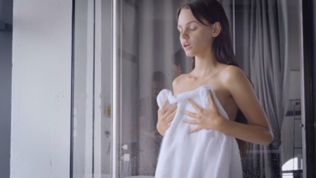 Худенькая девушка только что проснулась и пошла заниматься гигиеной в просторную ванную комнату. Натирая лосьоном маленькое тело, Ариэль добралась пальчиками до киски, которая моментально намокла от собственных нежных прикосновений. Расстелив большой полотенец на полу, она продолжила ласкать себя между ног, а потом ей лосьон пригодился во второй раз: худышка смазала им прилепленный к ванне самотык, сев на него сверху. Этим мастурбация не ограничилась, девчонка прихватила с собой черный фаллоимитатор в спальню, где дожидался вибратор. Двойная стимуляция оргазма привела к пику желаемого эффекта.