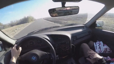 Веселый чувак просто едет по своим делам и замечает идущую по обочине девушку. На дворе уже давно не лето, а та легко одета. Надо бы ей помочь! Настойчивый водитель стал всячески зазывать ее к себе, обещая, что внутри ей будет намного теплее, рассказывает о безопасной поездке домой. Очкастая чикуля повелась и уже через пару минут езды, он начал вместе ручки автоматической коробки передач класть ладонь на ножку с игривыми чулочками сверху. Телочка залепетала про своего бойфренда, а вообще странно: не повелась на известную марку автомобиля самостоятельно, еще уламывать пришлось, но недолго. Любовники забрались на заднее сидение бэхи, где в не самой удобной позе очкарик раздвинула ноги, если так можно сказать, перед незнакомцем.