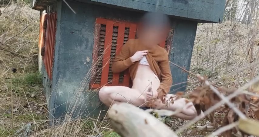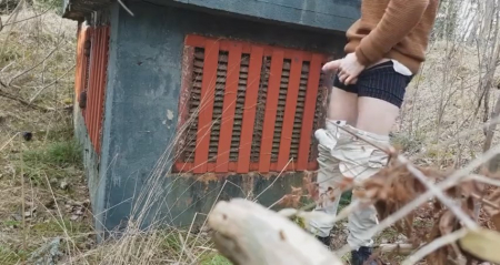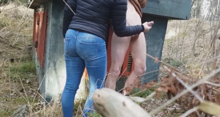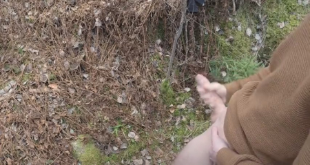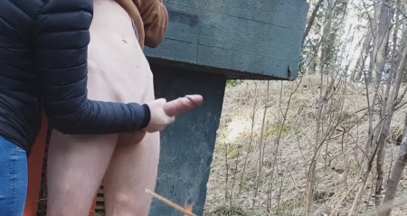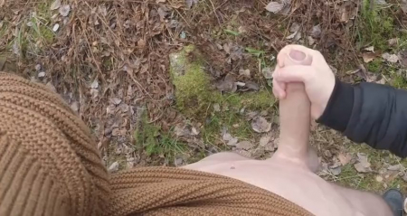 Худенький молодой человек зашел глубоко в лес, надеясь, что ему никто не помешает подрочить на камеру, установленную неподалеку. Для начала он был полностью голый, но холод заставил надеть свитер и продолжить дрочку длинного писюна рукой. Неожиданно сбоку появилась незнакомка в черной куртке и джинсах. Не слышно о чем они поговорили, но девушка подошла вплотную и стала сама гонять шкурку парня. Встав с другой стороны, чтобы было удобно работать правой рукой, она довела поступательно-возвратными движениями шалуна до мощного оргазма. Сучка как появилась, так и спокойно ушла, оставив собираться домой довольного эксгибициониста.