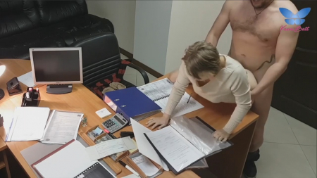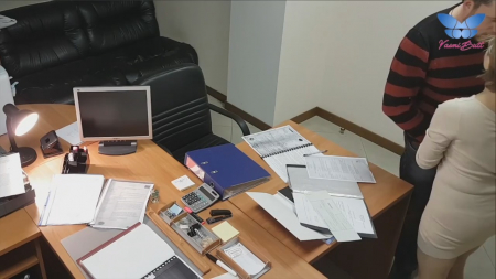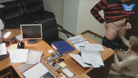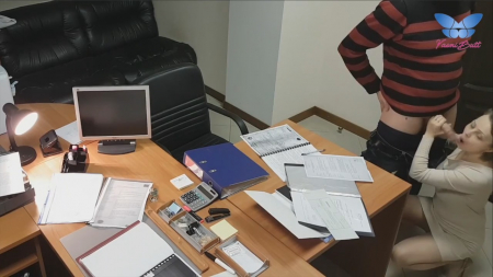 Короткостриженная коротышка на каблучках закрыла дверь в кабинет, заперевшись внутри с коллегой или может быть даже начальником. Нередкое явление когда девушки спят с высшими по рангу в цепи работы вечерком. Сперва россиянка успешно отсосала, после чего закинула одну ногу на стол, выставив мягкую попку для любовника. Сверху это снимает офисная камера, к которой у них есть доступ, чтобы дальше слить запись в интернет. Опосля работница перевернулась кверху пузом, уронив важные бумаги на стол. В такой позе ебырь обкончал ее лобок. Вот теперь можно отправляться домой.