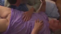 Старушка пошла мыться под душем. Пока ничего криминального, кроме того, что она намывает свое толстое тело и сиськи с жопой. А вот дальше она надевает сорочку, в которой ложится в кровать к молодому парню, сразу принявшемуся целоваться и ласкать между ног бабулю. Она застонала очень громко когда его совсем не брезгливый язык поигрался с древним клитором - бабушка это очень любит, но и сосет она тоже с удовольствием. Естественным образом любовники большого различия в возрасте переходят к половому соитию, закончившемуся на лицо с плотно сжатыми губами - соленого на сегодня достаточно.