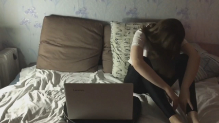 Парочка русских студентов, мальчик и девочка, собрались вместе посмотреть кинцо на ноутбуке, расположившись на кровати в метре друг от друга. Парень постоянно что-то комментирует с экрана, а подружка ему поддакивает, а сама думает как бы так извернуться, чтобы ему отсосать и не остаться в шлюхах. Сперва она просто провела рукой по члену через трусы, потом приложила больше усилий. Несмотря на просьбу не отвлекать, она решила взять в рот инициативу, сделав из маленького сморщенного писюна достоинство побольше. Скучное кинцо отключили и телочка, пососав крупным планом, приподняла футболку, чтобы ей кончили между маленьких сисек. В конце ждут неудачные дубли как в комедии с Джеки Чаном.