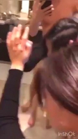 Красивая китаянка оперлась двумя ладонями в зеркало и, стоя на выпрямленных ногах, быстро подается попой назад с равным количеством фрикций в минуту, достаточно быстро и удобно. Молодой человек симпатяжки снимает на телефон как она, тихонько постанывая, еще сильнее возбуждается, глядя в отражение на себя и партнера раскосыми глазками.