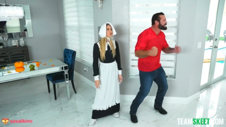 Нарядившись как монашка и наготовив всяких вкусностей на праздник, чтобы с ними пойти к соседям в гости на День Благодарения, девушка пытается добиться внимания своего накаченного любителя спорта. У него сегодня интересный матч, поэтому он может говорить только во время рекламы. Как только его не уговаривала низкая сожительница отвлечься, даже запрыгивала ему на спину и закрывала глаза - он был неумолим. Тогда подружка переоделась в наряд Барби и смогла наконец-то привлечь внимание своего здоровяка, который хоть и не пошел с ней по соседям, зато отодрал как следует, в конце услышав стук в дверь.