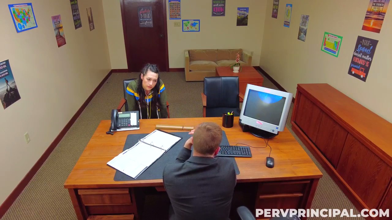 Директор учебного заведения посреди рабочего дня выдернул одну из учительниц для серьезного разговора в своем кабинете. У женщины отличные показатели со спортивной командой по баскетболу, но собственный сын имеет крупную неуспеваемость, к тому же он себя очень плохо ведет с другими учительницами: трогает за сиськи, лапает за попки. Остается только один вариант: забрать пацана на домашнее обучение или перевести в другую школу. Хотя нет (при этом мужчина плотно закрывает дверь), его красивая мамка может все сделать как нужно сексом на столе и тогда будет возможность еще немного подумать на счет судьбы подростка. Во время жаркого траха физручка умудрилась набрать сыночку, чтобы по телефону сквозь стоны обрадовать его неожиданно решенными проблемами.