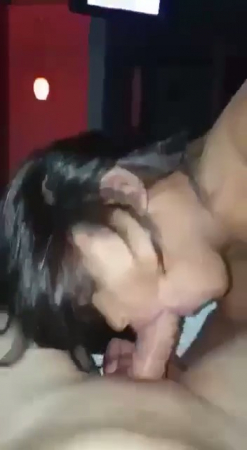 Хозяин ночного клуба остался с развратной тусовщицей после окончания рабочей смены. Музыку еще не успели выключить, а за нормальной камерой сбегать времени не было, поэтому пришлось на телефон снимать как симпатичная девушка умеет делать минет. В этом у латиноамериканки глубочайшие познания - сидя сбоку от мужчины, она качественно заглатывает до конца, ударяясь носом в его пах, а руки используются только чтобы придерживать не до конца вставший ствол. Сучка только к концу прикрыла объектив ладошкой, будто до этого не видела, что ее лицо снимают.