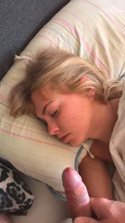 Пара уже достаточно давно живет вместе, поэтому парень ничего не стесняется, связанного с сексом с подружкой. На этот раз он, вооружившись мобильным телефоном и включив на нем запись видео, подошел к своей любимой и начал дрочить член рядом с ее головой. Она на данный момент все еще спала и вот-вот готова была проснуться, но он ускорил процесс, кончив на лицо с закрытыми глазами. Даже не удивившись, милая хотела пожелать доброго утра, но произнесла только "Oh, my God!".