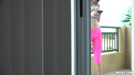 Идя в гости, герой данного ролика остановился за кустами, ведь он увидел с улицы как его подружка разминается. Так как дверь в городе не принято закрывать, он на цыпочках вошел внутрь и увидел еще более интересное зрелище: красотуля решила помастурбировать с телефоном в руках, включив на нем порнушку. Тут-то приятель и заглянул на просторную открытую лоджию, предварительно позвонив. Малышка засмущалась и стала прикрывать грудь, но он уже все достаточно разглядел и просто предложил свой член для помощи, а отказываться ей уже не захотелось - слишком сильно хотелось кончить и так будет даже интересней.