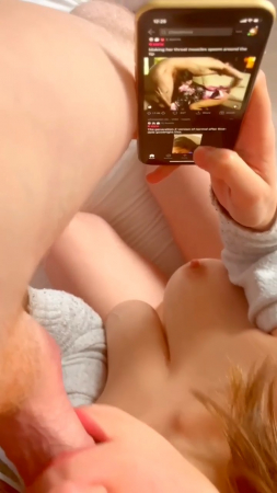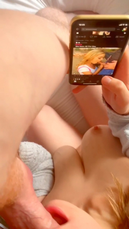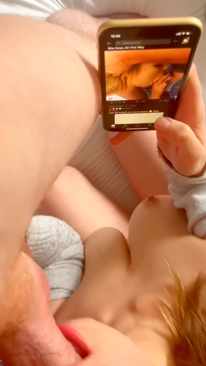 Миленькая извращенка пролистывает такие же короткие ролики как этот на телефоне, останавливаясь только на тех, где девушки делают минет, очень глубокий минет. Сама же героиня, увидев как работают другие, повторяет на пенисе бойфренда, но работая еще лучше, так как при заглоте со звуками не касается губами ствола, а уже когда голова идет обратно, схлопывает губки, отчего парень застонал от неимоверного кайфа. Вот только знать бы как зовут эту дивчину или пару, дабы добавить с ними еще интересненького, явно пошлая малышка любит все, что связано с сексом.