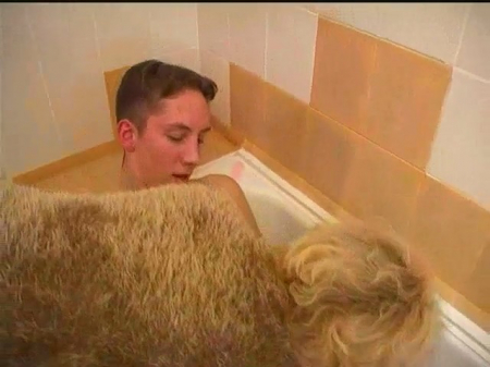 Беловолосая мать моет посуду, ее сыночек возвращается из школы с приподнятым настроением, из-за чего он целует в щеку любящую тетеньку. Он рассказывает про свои дела на учебе, про плохие оценки и все такое прочее неинтересное, а после идет в ванную комнату, чтобы помыться. За ним следует зрелая женщина, приготовившаяся переключиться с посуды на худощавое юное тело немногим старше восемнадцати лет. Постепенно ее рука дотянулась до его писюна под водой, которому тоже нужно было уделить достаточно внимания, но дама так увлеклась, что и сама не заметила как перепихнулась с сыном в тепленькой водичке.