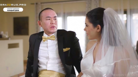 Слишком много гостей уморили брачующихся раньше времени, поэтому они решили уединиться в спальне, так как и вечер подходит к концу. С воодушевлением красивая итальянская невеста сообщила, что рылась в истории браузера жениха и видела, что тот интересуется анальным сексом, потому девушка весь день носила в жопе анальную пробку, даже в церкви и при родственниках во время ужина. Эта история так возмутила китайца, что он с психу сказал, что любит только смотреть анальный секс, а не заниматься им, зато подслушавший разговор дружок невесты оказался тут как тут, приняв на себя участь вынуть пробочку и сменить ее на собственный пенис.