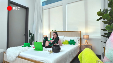 Девчушка-зеленая таракашка поставила на кроватку ноутбук, раскидала шоколадные золотые монетки лепрекона и вставила в темную киску вибратор. Все это было для сотен зрителей, быстро создавших популярность для низкорослой симпатяги, совсем не стесняющейся своего брата, который в другой комнате решил тоже передернуть на порнушку. Его привлек громкий звук из спальни сводной родственницы, но дверь была заперта. Несколько раз он подходил и спрашивал все ли в порядке с сестрой и та каждый раз его прогоняла, пока он силой не открыл дверь и не увидел чем девушка занимается. Раз ей так хочется кончить, то лучше это сделать брат в оффлайн режиме!
