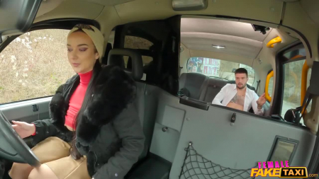 На улице очень холодно, поэтому люди все чаще пользуются такси, чтобы добраться до конечной точки. В старенький автомобиль такси сел симпатичный парень, который явно нервничал и ему было чем поделиться с разговорчивой красоткой-таксисткой за рулем. Ему нужно ехать в суд по делу о воровстве денег, которых он не брал 100 процентов, и как-то успокоиться бы ему не помешало. Девушка предложила ему потрогать ее недавно отремонтированные сиськи, а когда увидела, что он стал дрочить на пассажирском сиденье, остановила тачку в глуши и пошла к нему трахаться, пока есть минутка свободного времени между заказами.