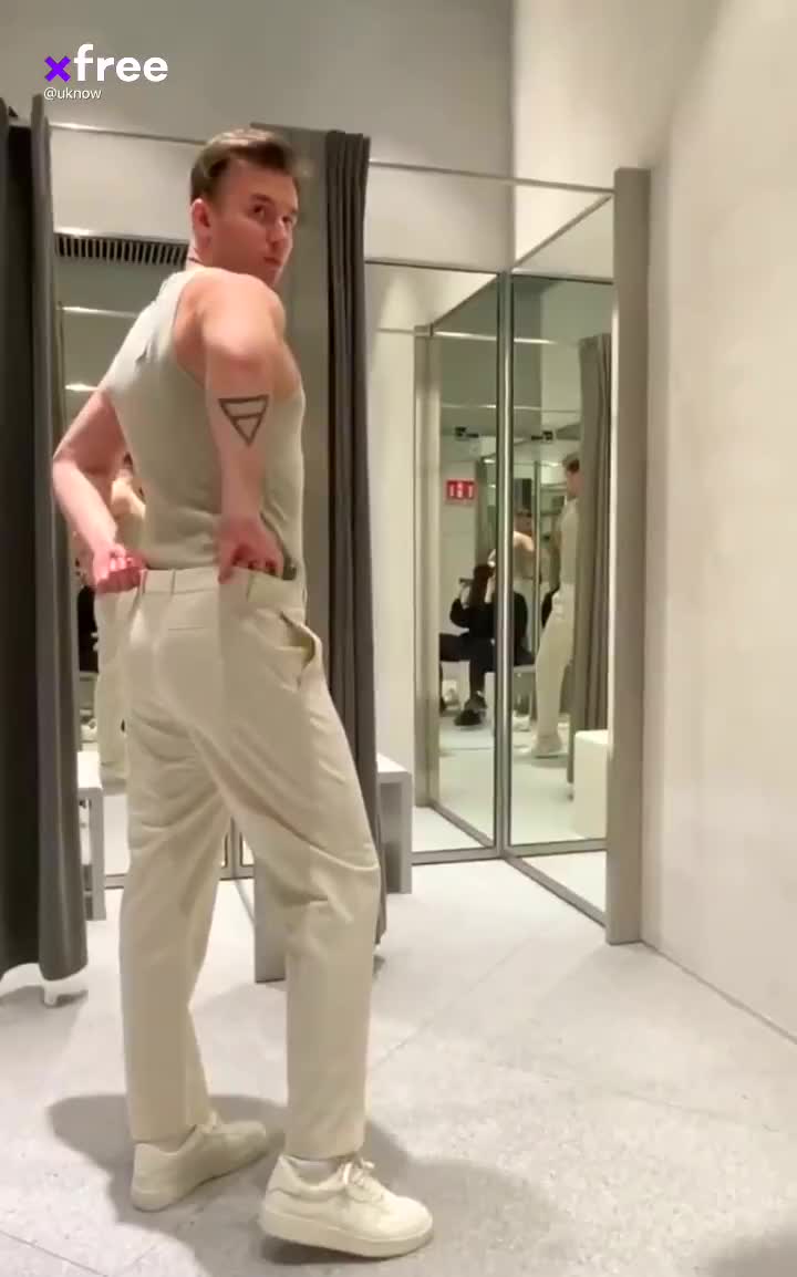 Слегка пидорковатой наружности парень взял подружку в ТЦ, чтобы она оценила как на его заднице будут сидеть новые штаны. На самом деле все это было прикрытием для того, чтобы вместе закрыться всего-лишь шторкой в примерочной, где телочка встала рачком, глядя в зеркало как к ней сзади подбирается бойфренд со вставшим хуем, заправленным в киску. Высокий паренек снимает крупным планом задницу, после чего девка сама начинает скакать сверху, стараясь не издавать ни звука. Вскоре кто-то заговорил с извращенцами из-за ширмы, но парочке удалось сохранить конфиденциальность. Подруга получила полный рот малафьи.