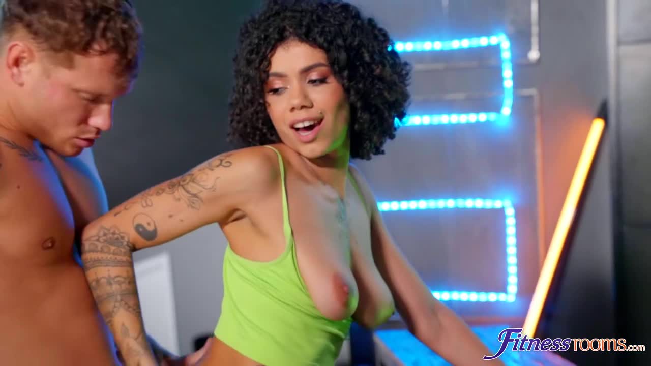 Кудрявая красотка пришла в спортивный зал, чтобы позаниматься, но даже она сама, видя себя в отражении, не может сдержать руки, которые хотят мастурбировать на ту девицу в зеркале, снимая себя на телефон. За этим пошлым делом ее застукал второй посетитель спортзала, начавший дрочить стоя за качнувшимся шкафом. Нимфоманка увидела незнакомца и дала ему в руки свой смартфон, чтобы тот снимал на камеру сочный минет надроченного члена латинкой. В общем-то, после этого парочка полноценно занялась сексом на матах и этот контент стоит посмотреть. [FitnessRooms] Mih Ninfetinha - Big ass ebony Latina sex in gym.