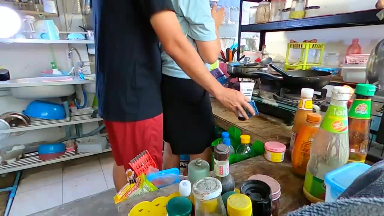 На кухне пиздецового сарая стоит азиатка. Она, наверное, собирается приготовить что-нибудь перекусить для себя и своего парня, но у бедняка другие планы на крайние несколько минут. Он подходит к тайке сзади со смазкой, а также пачкой презервативов и предлагает перед ним загнуться раком сняв юбку, что и делает его толстушка, стоя возле сразу двух раковин. Обстановка тут, конечно, особенная - в такой то и дело приходит на ум сношаться и сношаться, все равно нехуй делать, да и процесс будет для бабы поприятней, чем месить тесто с комарами.