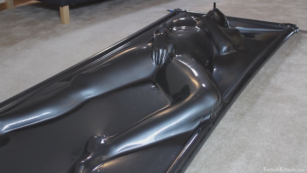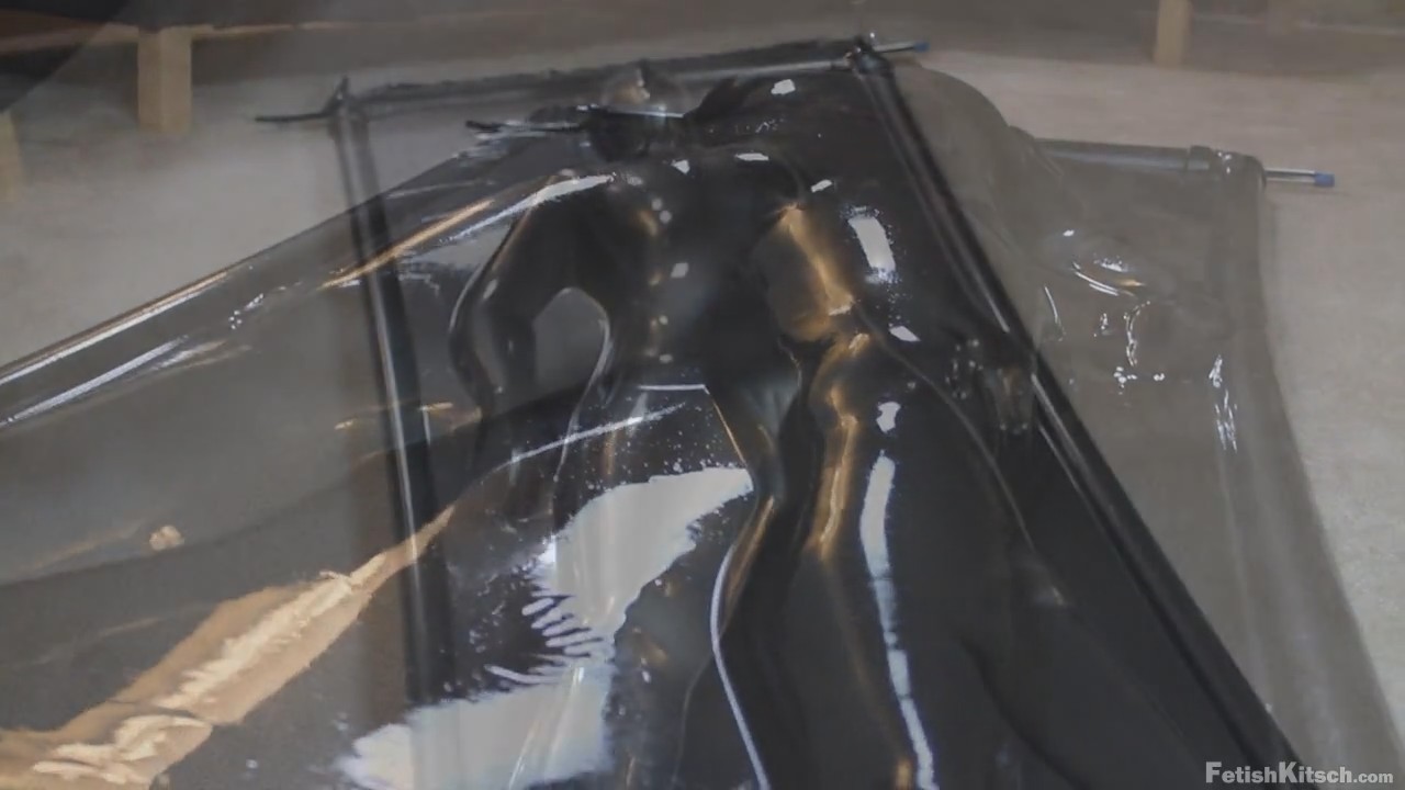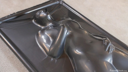 Сексапильная девушка ложится под тонкий слой латекса (материал натянут как покрывало на кровати), а потом этот слой медленно облипает аппетитные формы милашки. Поистине подобное зрелище завораживает и отвести взгляд просто невозможно - так и неотрывно наблюдаешь, как телочка сначала ласкает себя, а потом ей дрочат вибратором.