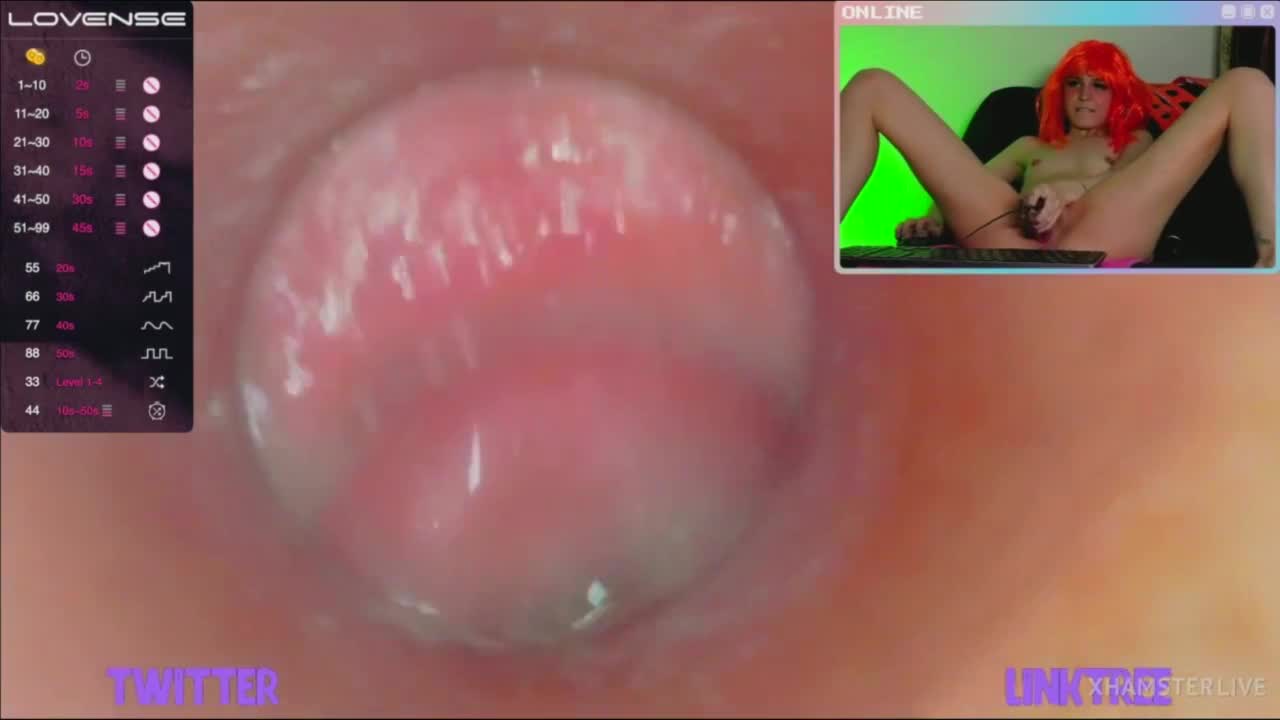 Моделька-экспериментатор Melissa XXS PIE услышала просьбы зрителей трансляции вставить стеклянную трубку с камерой внутрь вагины. Она смазала ее рукой по всей длине и стала неторопливо вводить внутрь, показав себя на весь экран, а потом и крупным планом видео с той самой камеры, что уже находится внутри ее влагалища. Это буквально то, что обычно видит головка члена, пробуривая розовые женские внутренности. Дабы все было как взаправду, малышка взяла для дополнительного кайфа вибратор и от двойного удовольствия вскоре смогла испытать оргазм - трубочкой она дрочила, а вибратор нужен был для клитора снаружи.