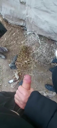 Неизвестно при каких обстоятельствах троица оказалась за какими-то разбомбленными гаражами в холод, но суть в том, что парень дрочил член при двух телочках и предложил кому-нибудь "попробовать". Та что справа с удовольствием взяла его хуй в крепкую руку и стала гонять его шкурку, стоя сбоку. На просьбу вторая не ответила положительно, но сказала, что просто посмотрит. Так продолжалась съемка на телефон несколько минут пока из головки на землю не показала сперма. Девица все сильнее сжимала ствол, легонько подрачивая, будто пыталась выдавить оттуда все без остатка. Молодому человеку очень это понравилось.