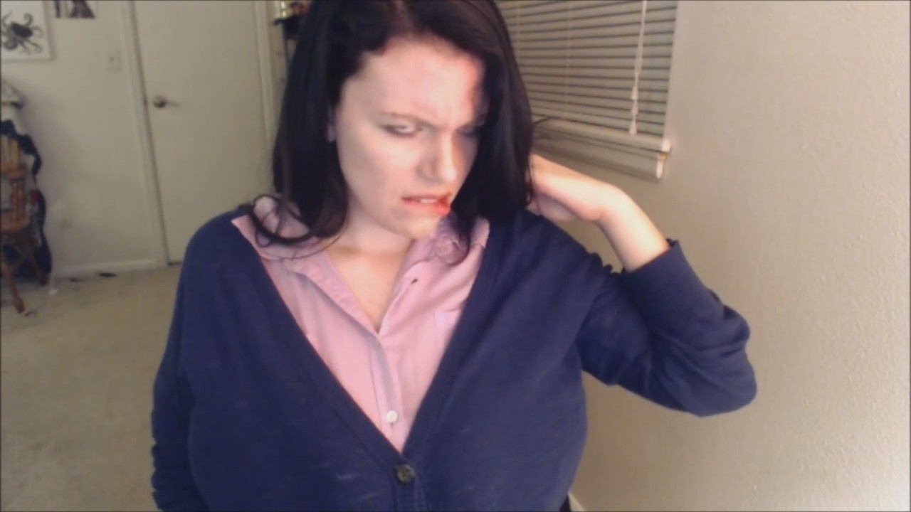 Симпатичная телка с огромными сиськами перед камерой записывает свой монолог. Но во время записи довольно странная дамочка резко возбуждается и начинает трогать аппетитную плоть. Потом так же резко девушка "возвращается" в обычное состояние и продолжает говорить. Но волна снова накатывает - только еще сильнее - и симпатяга начинает трахать себя пальцами.