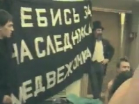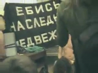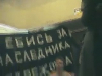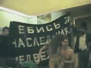 Арт-группа "Война" устроила перфоманс на тему президентских выборов, показав своим выступлением, что происходит со страной. Несколько молодых пар занялись сексом в одном из залов московского биологического музея, как бы говоря, что всех нас "поставили раком" - впрочем, ребята угадали. Вам же, дорогие зрители, предлагаем насладиться групповым порно - молодые люди под громкие звуки колокола отъебали своих симпатичных подружек и все на камеру сняли.