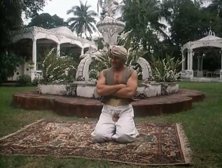 Молодой человек во время путешествия забрел в чужой сарай и решил в не отдохнуть. Найдя потертый ковер, чтобы прилечь, мужчина обнаружил на нем пластмассовый меч и лампу. В шутку он начал тереть лампу и перенесся в страну джина, где возможно осуществление всех желаний. Ничего не пришло лучше на ум, как сразу же с головой окунуться в омут любви - развлекся с одной прелестницей, после отымел другую в попку, а дальше с двумя перепихнулся (а после развлечения с четырьмя малышками и вовсе почувствовал себя всемогущим).