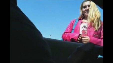 Нельзя просто так взять, да начать дрочить свой член в машине, стоя на парковке торгового центра. Понятное дело, что если уж припрет, то и в отделении милиции наяривать будешь, но всегда есть риск нарваться на крайне любопытных до твоего занятия людей. Здесь, например, мужчина сидит и никого не трогает, кроме своего пиструна, а до него р-р-раз, и докапывается непонятно откуда возьмись девушка. Но парень оказывается мастером обаяния, и в итоге предлагает ей додрочить его хуй самой. Та охотно соглашается, и вскоре вся ее рука уже стала вымазана в сперме. А нечего до людей докапываться, женщина!