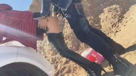 Красивая природа, пустырь, серебристый джип и камера на штативе. Что еще нужно людям, чтобы снять отличную порнуху. Стильная и стройная брюнетка в дерзких очках по щелчку пальцев уже насасывает письку своего парня, а затем быстренько скидывает узкие джинсы, чтобы тот вошел в нее. Но даже учитывая красоту этой девушки, при сношении раком у него слегка падает член. Он сам в шоке, но девушка не теряется и начинает вновь делать ему минет. Но счастье скорострела продлится недолго - скоро снова повторится эта же ситуация, после чего он резко кончил в нее и отпрыгнет из кадра, чтобы больше не позорить свое лицо.