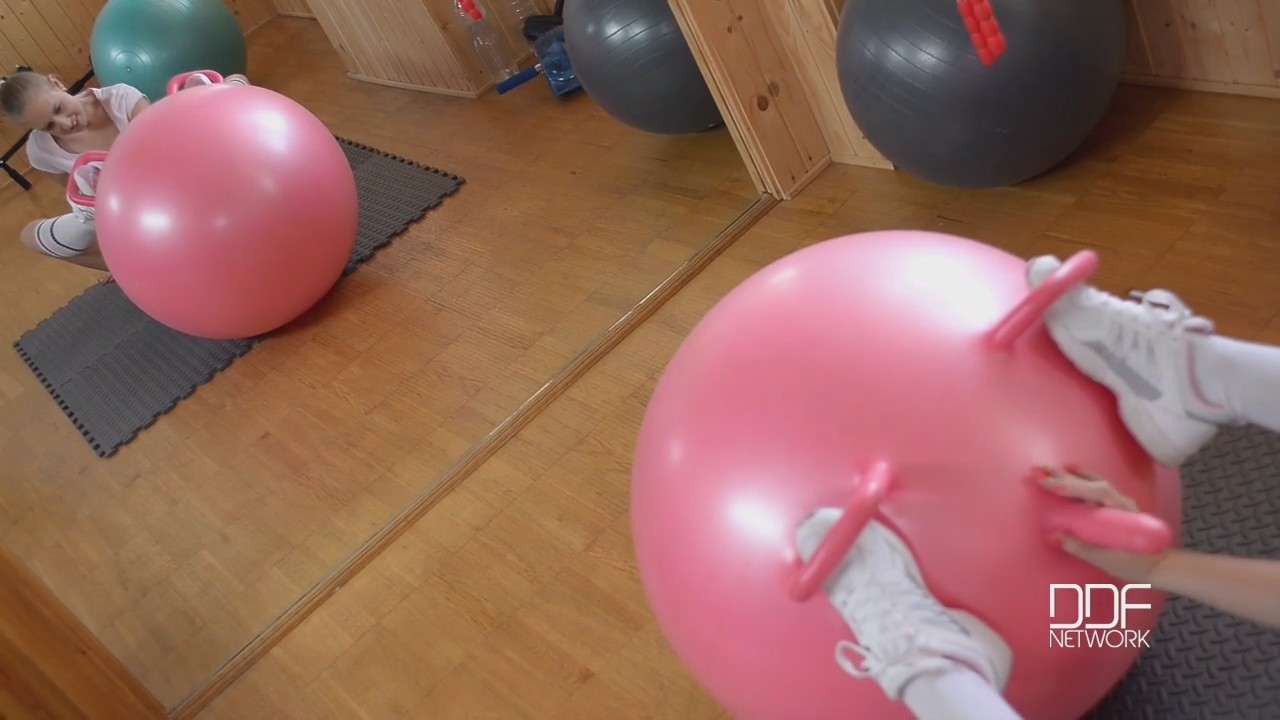 В спортзал на фитнес все ходят не просто так. Кто-то фоткается в инстаграм для лайков, а кто-то просто ищет себе тренера, с которым можно поебаться после занятий. Но британскими учеными вместе с ушлой блондинкой найдет способ ебаться в зале прямо во время занятий! Все дело в том, что в помещении есть множество шаров для фитнеса, на которых обычно прыгают. Но один из них - особенный, розового цвета. И так вышло, что вместо ручек для переноски из него торчит надувной хуй. Блонда во всю экспериментирует с новой массивной секс игрушкой, не забывая пихать надувной член себе в попку для полной проверки устройства.