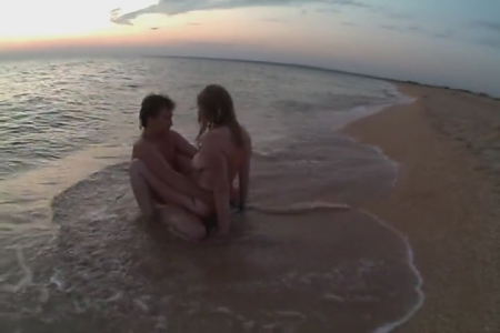 Что может быть лучшим окончанием отпуска? Конечно же секс на море. Самое сложное - это найти вечером пляж, где совершенно нет народа. А эта пара еще и поставила в песок камеру на берегу, и надо следить, чтобы ее не спиздил. Но это все мелочи по сравнению с тем, что она получает взамен. Ведь это же секс по время прилива моря - можно чувственно трахаться прямо в воде, получая дикое удовольствие не только от сношений, но и от накатывающих с головой волн. Под звук прибоя мужчина кончает внутрь своей женщины и замирает от счастья - такое еще повторится не скоро, ведь завтра нужно будет уезжать домой.