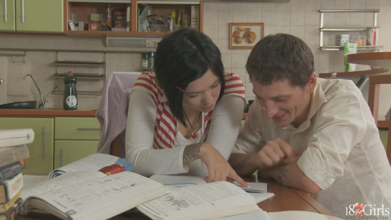 Азиаточка решила слегка сэкономить и подтянуть свою историю с помощью репетитора, который являлся ее знакомым. Естественно, что такие люди обычно не соглашаются работать ниже рынка, поэтому у парня должны быть и другие причины, чтобы с ней заниматься. Он уже пару лет как подкатывал к ней и хотел трахнуть, и сегодня для него сошлись звезды. Так что позанимавшись с ней для приличия пол часика, он уже начал мацать ее попку рукой, но ее хватило отказывать ему всего три раза. После этого он и в рот ей насовал, и в киску, и конечно же банально доминировал.