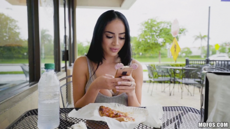Телка накачала себе губы с сиськами, но для таких буферов выглядит она слишком стройно. Поэтому она ничего не придумала кроме как жрать пиццу в кафешке. Пепперони в этот раз готовил какой-то криворукий грузин, поэтомму на вкус оно было как говно. Благо, что ее развлекал парень с камерой, который уделял ей порой слишком много внимания. Но дело приняло новый оборот, когда ей в руки попало от него четыре сотни баксов - они сразу нашли какой-то стремный чулан, а телочка сделала то, чего умеет лучше всего - мастерски отсосала и отдала киску на растерзание.